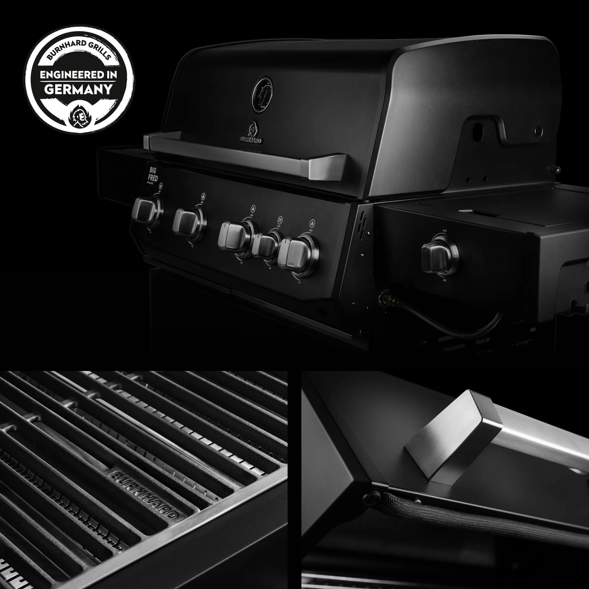 Produktinformationen "BURNHARD Big FRED Deluxe Plus Gasgrill 4 Brenner Series 4 Black Edition mit Gusseisen Grillrost Maximale BBQ Power 24,7 kW Premium Ausstattung"