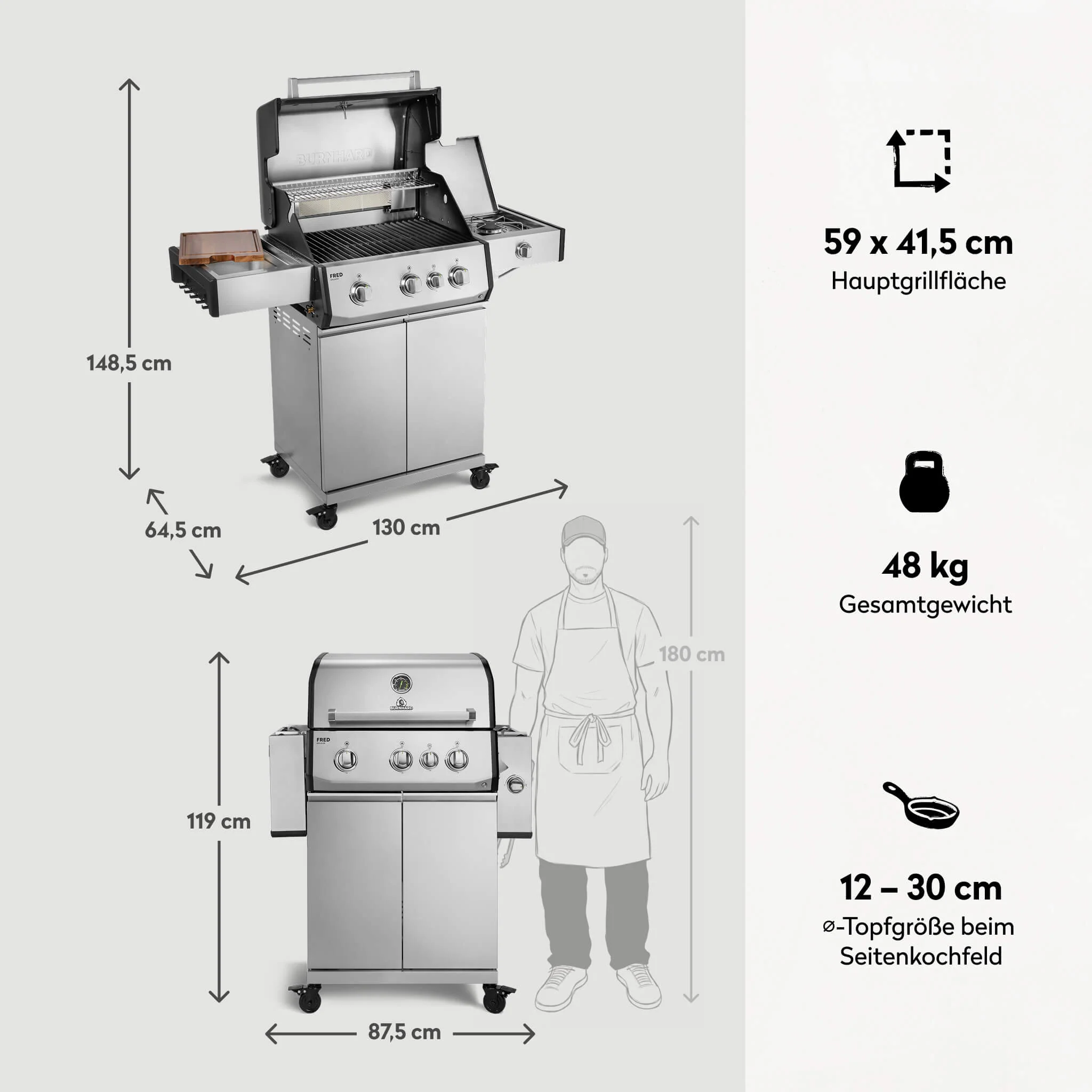 Produktinformationen "BURNHARD FRED Deluxe Gasgrill 3 Brenner Series 4 Edelstahl Grill Maximale BBQ Power langlebig hochwertig"