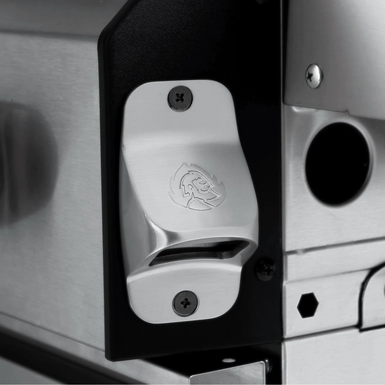 Der Korpus aus Edelstahl ist besonders langlebig und pflegeleicht. Klappbare Seitentische schaffen bei Bedarf zusätzliche Arbeitsfläche, während der integrierte Stauraum Platz für Zubehör und Gasflasche bietet. So bleibt alles ordentlich und griffbereit.