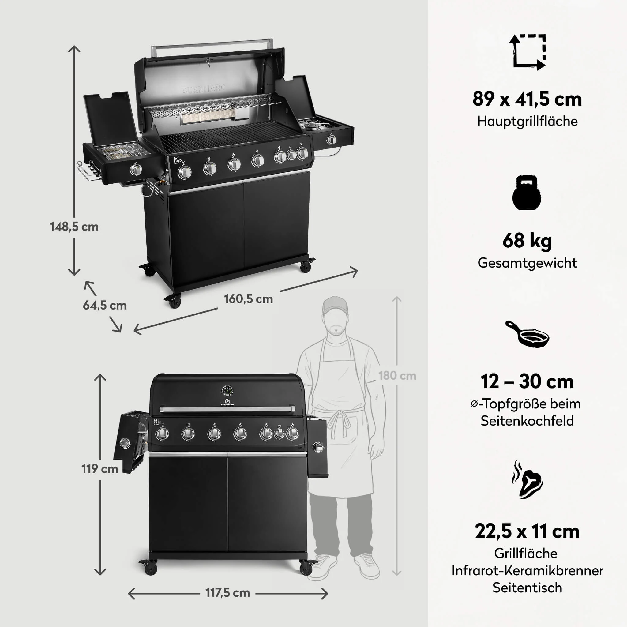 Produktinformationen "BURNHARD Fat FRED Deluxe Plus Gasgrill 6 Brenner Series 4 Black Edition mit Gusseisen Grillrost Maximale BBQ Power 30,7 kW XXL Premium Ausstattung"