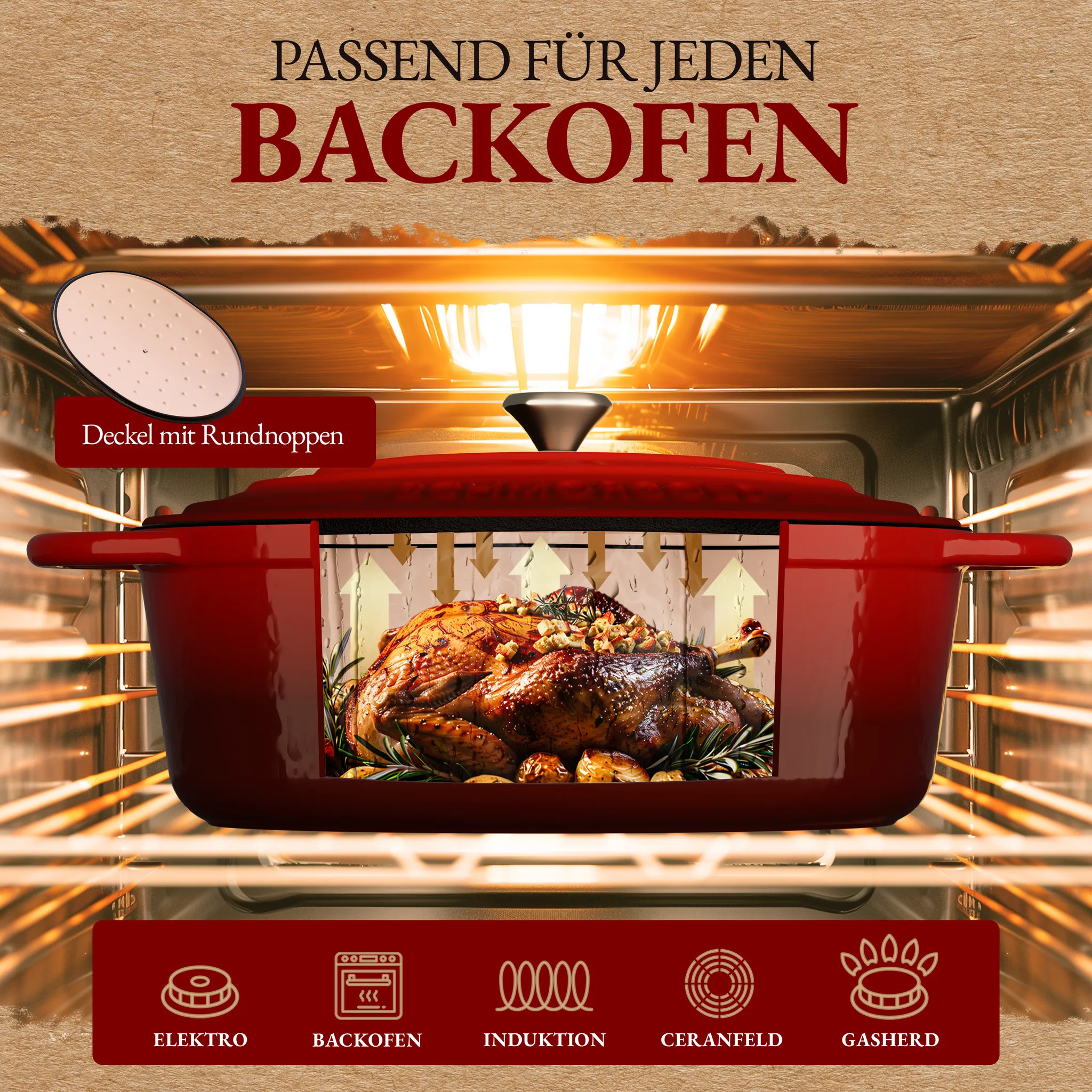 Ideal für | Braten, Schmoren, Backen, Eintöpfe |